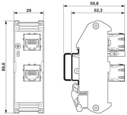 CAT5e. 10/100/1000 MBit/s. Montaggio su guida di supporto. Possibilità di selezionare collegamento alla schermatura mediante Jumper.