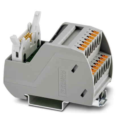 Modulo VARIOFACE con connessioni Push-in e connettore maschio per cavo piatto per l'installazione su guide di montaggio NS 35, con connettori maschio e staffe di bloccaggio corte e lunghe per connettori femmina, n. poli: 20