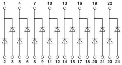 Modulo per prova lampade, con 2 diodi con catodo in comune: versione a 8 coppie, per collegamento singolo