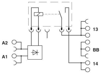 Morsetto base PLC da 14 mm per elevate correnti d'inserzione con connessione a vite, senza equipagg. relè o relè a stato solido, per il montaggio su guida di montaggio, NS 35/7,5 con connessione al conduttore di ritorno (BB), 1 contatto aperto a riposo, tens. di ingr. 24 V DC