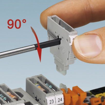 Per l'equipaggiamento è possibile aprire o chiudere le connessioni a molla all'interno del connettore con un giro di cacciavite. Utilizzabile in tutti i morsetti sezionatori ...-TG con larghezza di 5,2 mm o superiore, delle serie PT, ST, QTC e UT.