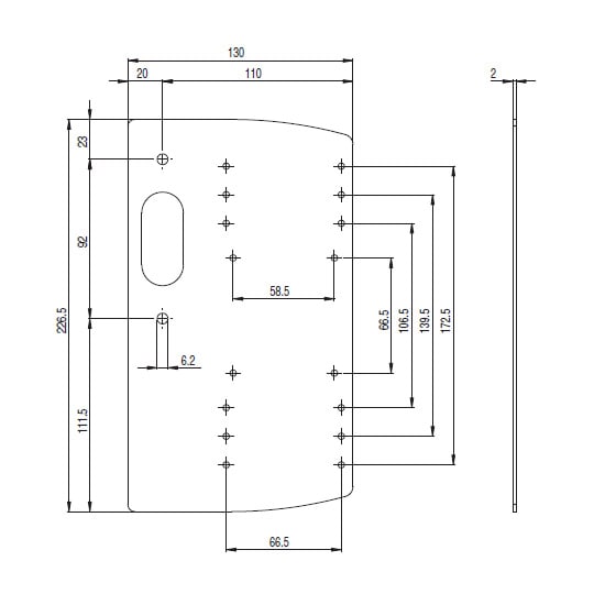 Piastra sagomata laterale porta cassetta. Piastra sagomata applicabile sotto la piastra di fissaggio dell'interruttore. Installabile sia a destra che a sinistra e completa di fori permette il fissaggio (tramite viti autofilettanti di tipo commerciale) discatole per la pulsanteria Pizzato Elettrica linea EROUND.