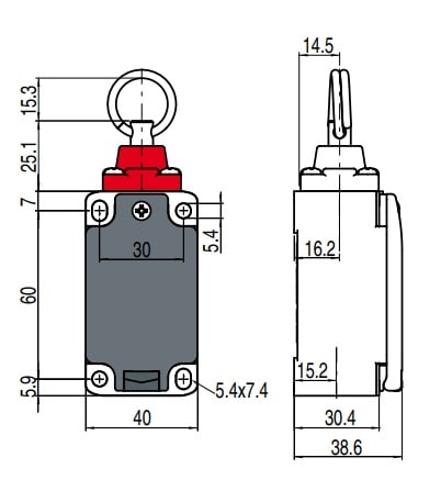 Interruttore di sicurezza a fune senza reset per arresti semplici. Custodia: Custodia in tecnopolimero, una entrata cavi filettata PG 13,5 (serie FP). Unità di contatto: 1NC scatto lento (B8). Testa: A fune senza reset per arresti semplici. Grado di protezione: IP67 secondo EN 60529. Apertura positiva: Sì
