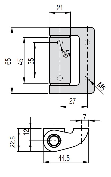 Cerniera metallica complementare sprovvista di parti elettriche. Dimensioni 65 x 44.5 mm.