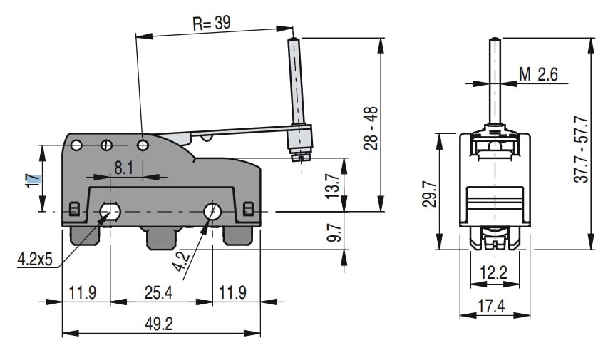 PIZZATO ELETTRICA - PZZMK H11R60 MICROINTERRUTTORE A LEVA CON VITE DI REG