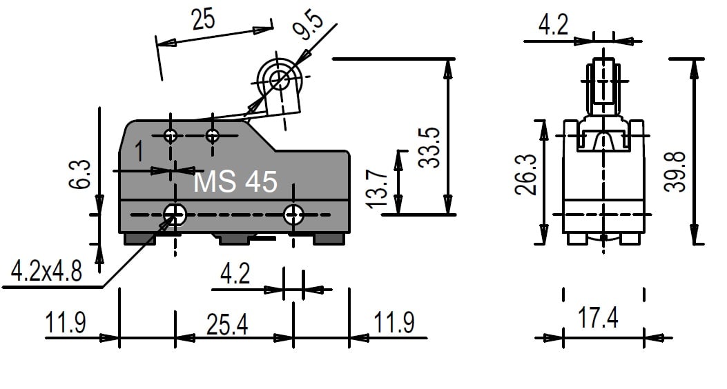 PIZZATO ELETTRICA - PZZMS 45 MICROINTERRUTTORE A LEVA CORTA CON ROTEL