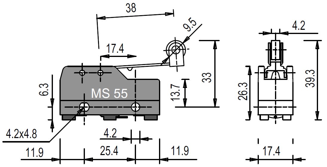 PIZZATO ELETTRICA - PZZMS 55 MICROINTERRUTTORE A LEVA CON ROTELLA