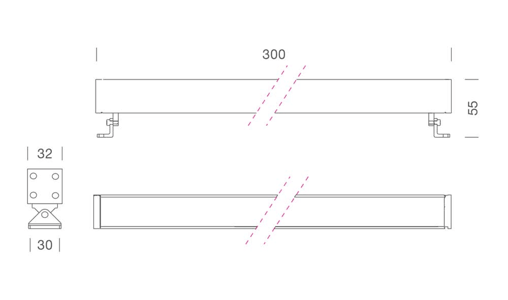 MINI CORNICHE Applique - 300 mm - Corpo in lega di alluminio estruso verniciato e resistente alla corrosione. Viti in acciaio inox A4. Protezione con trattamento di anodizzazione, fondo con polveri epossidiche e verniciatura poliestere. Alimentazione da realizzare esternamente con trasformatore a tensione continua da 24V DC. Valvola Gore per impedire la formazione di condensa all'interno del prodotto. Ottica: 13°. LED Bianco 8W 1125lm 3000K 24V DC. Colore: grigio.