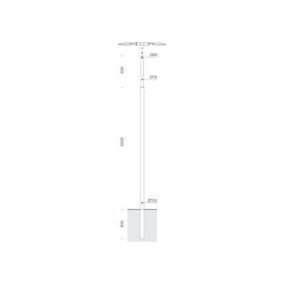 Palo cilindrico Ø60 mm, h.6000mm, Ø102 / 76 mm attacco, FT interrato 0,8m. Finitura grigio.