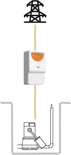M.P.S. 500 - Centrale antiallagamento a singola uscita con batterie ermetiche interne e cavo di alimentazione con spina • Singola uscita • Realizzato su struttura portante in acciaio e rivestimento in ABS autoestinguente • Gestione a doppio microprocessore multilingua • Display multifunzioni (tensione rete, batteria, corrente di ricarica, potenza erogata, storico e altre funzioni) • Controllo amperometrico intelligente a riarmo automatico (salvamotore) • Controllo e gestione ricarica delle batterie (7 livelli di ricarica) • Segnalazione acustica e ottica elettropompa in avaria (sovraccarico).