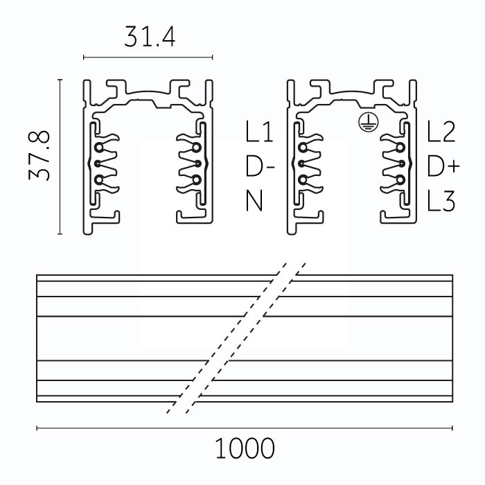 Binario 3-circuit track, sospensione, l=1000 mm