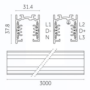 Binario 3 Accensioni + DIMM/DALI - Binario standard. 3000 X 31,4 X 37,8mm. 3,4Kg - Bianco.