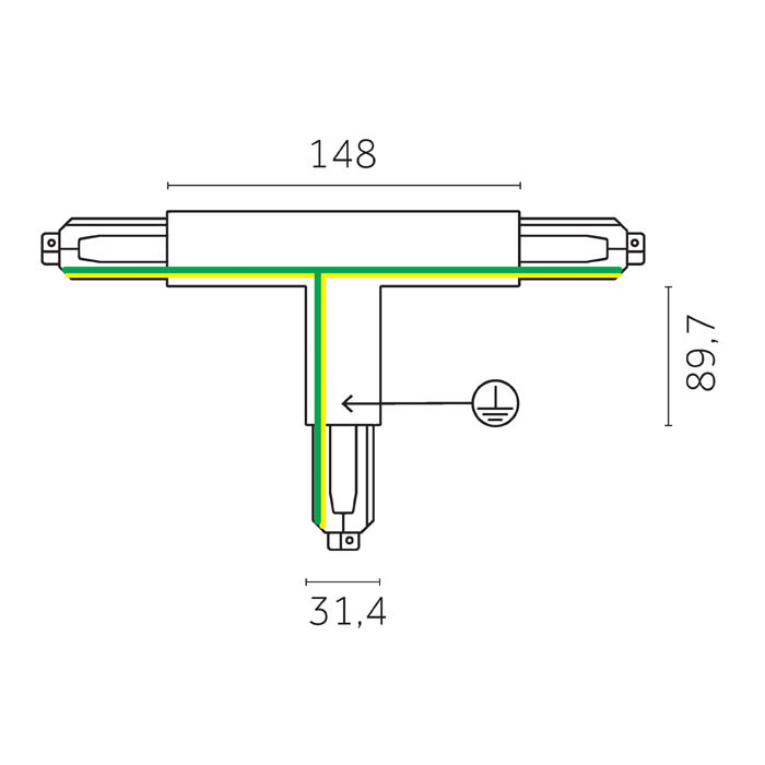 Accessorio per binario 3 Accensioni. Giunto a T . Conduttore di terra interna / sinistra. Bianco .