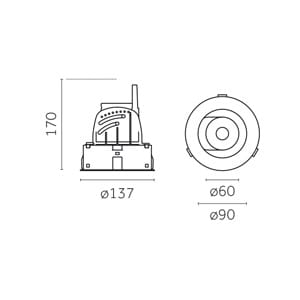 REGGIANI SPA ILLU - REGX.1X.RH42B.HQ12 UNIT RECES ROUND PERFORM D60 9W TRIM NB