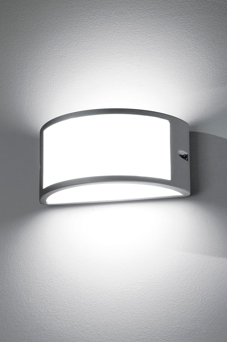 Apparecchio a parete per esterno (IP54) con attacco E27 che consente di montare lampadina LED. Strut tura in pressofusione di alluminio verniciato conpolveri poliestere a elevata resistenza ai raggi ultravioletti e alla corrosione, diffusore in policarbonato. Disponibile nella versione con effetto tutta luce, con luce diffusa e protetta o nella versione biemissione. Proposto in tre finiture: bianco, grigio, antracite. Disponibili giunti certificati IP68 per la realizzazione delle connessioni elettriche, sicure, durevoli e con barriera anticonde nsa.