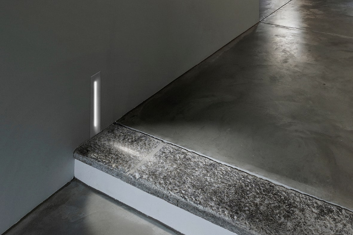 Incasso LED a parete, corredato di cassaforma perinstallazione in cartongesso e muratura. Struttura in metallo verniciato in due finiture: bianco e grigio. Segnapasso proposto in due dimensioni (h 70mm e 184mm), con temperatura colore 3000K. Corredato dialimentatore LED da installare in remoto, ch e si pu? alloggiare nella cassaforma.