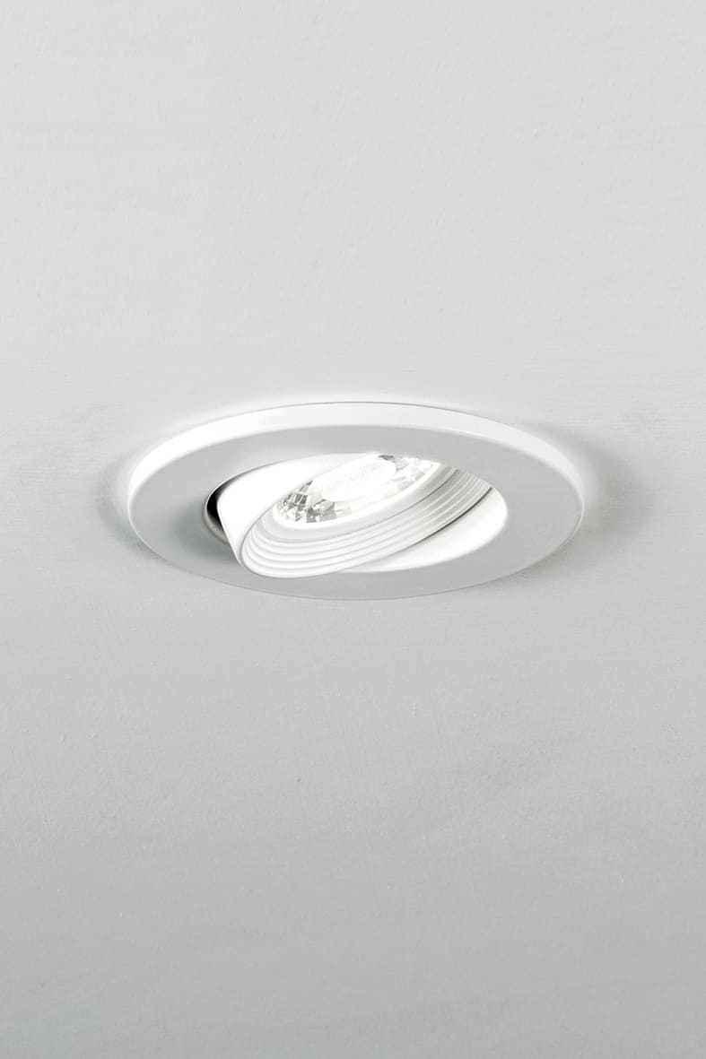 Faretto LED ad incasso orientabile su un unico asse di ? 25? e dimmerabile. Struttura in pressofusione di alluminio e diffusore in policarbonato trasparente. LED COB integrato, corredato di alimentatore LED da installare in remoto. Disponibile in tre finiture (bianco, grigio e nero) e due temperature colore (3000K e 4000K). Cassaforma per installaz ione in muratura da ordinare come accessorio.