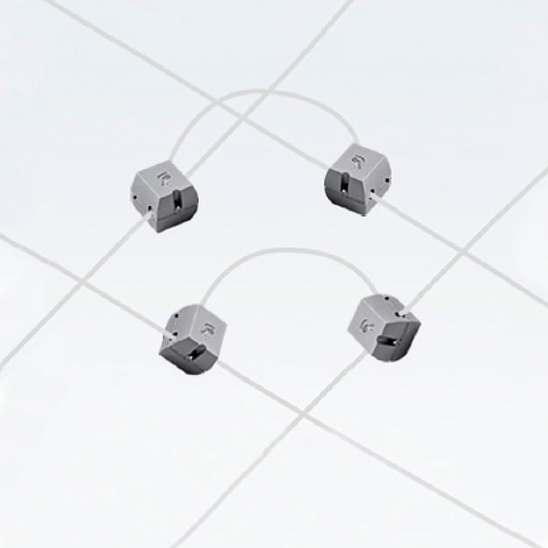 Sistema a tesata con coppia di cavi con interasse160mm: permette di installare apparecchi con fonte luminosa con LED integrato o con attacco tradizionale (GU10, R7s, E27 che consentono di montare lampadina LED). Corpi illuminanti da posizionare secondo le esigenze di installazione in estruso di all uminio (verniciato bianco opaco o grigio opaco) ediffusore in policarbonato. Disponibili in versione luce diffusa, monoemissione o biemissione o a sp ot con corpo illuminante orientabile su due assi.LED disponibile in due gradazioni (3000K e 4000K).