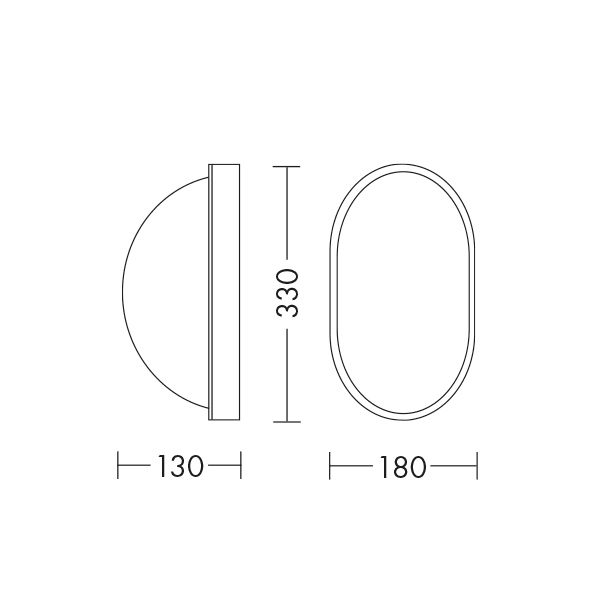 Disponibile nella versione a parete e a plafone. A pparecchio per esterno (IP65) con effetto di lucediffusa. Struttura in materiale termoplastico, dif fusore in policarbonato. Proposto con attacco E27che consente di montare lampadina LED. Disponibile in versione tonda e ovale e in due finiture (bianco e nero). Disponibili giunti certificati IP68 per la realizzazione delle connessioni elettriche, s icure, durevoli e con barriera anticondensa.