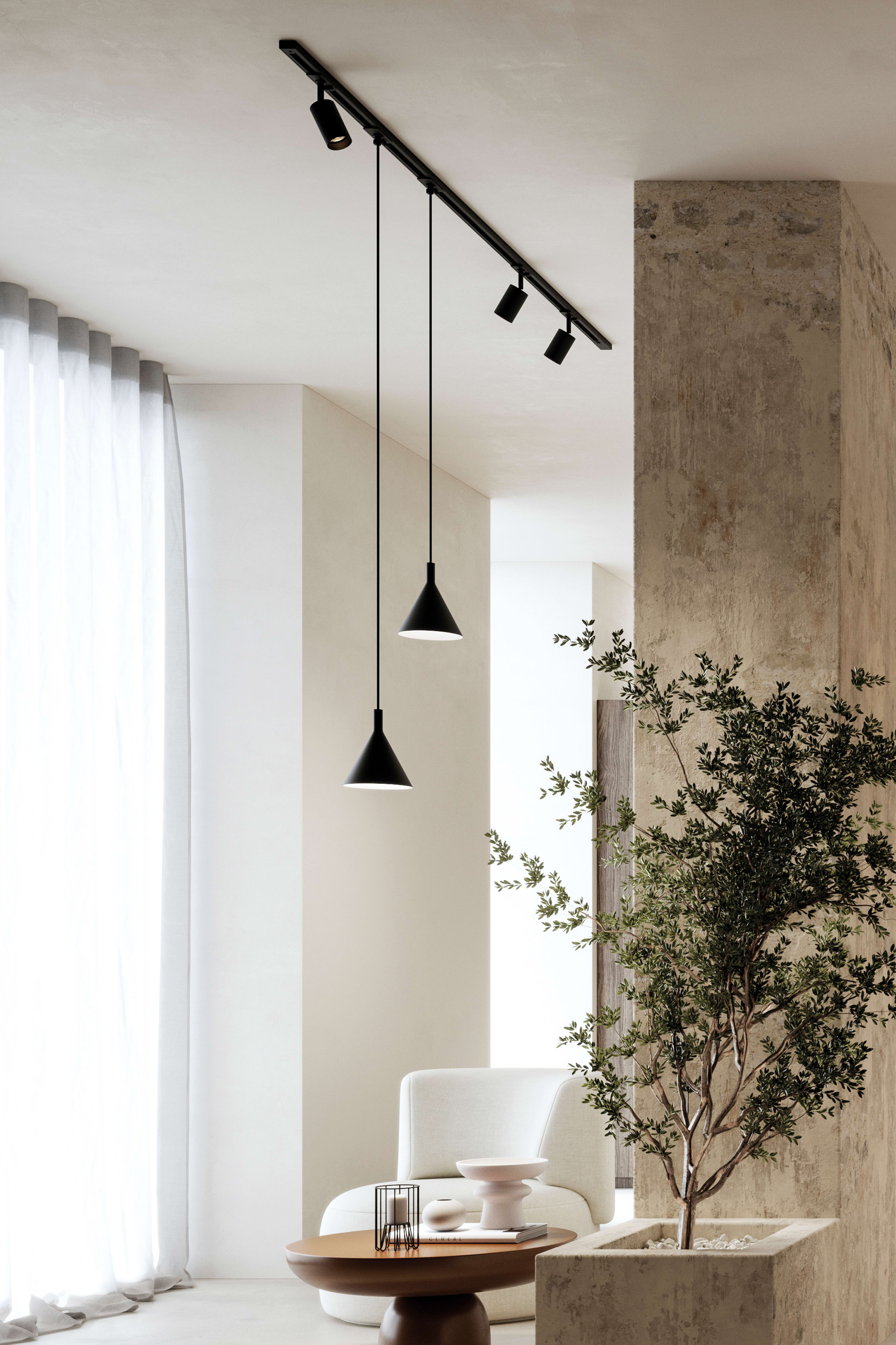 Binario monofase a tensione di rete 220V. Applicabile a parete, plafone, incasso o a sospensione conappositi accessori. Realizzato in lega di alluminio estruso, conduttori in rame alloggiati in estrusi in PVC. Disponibile in tre dimensioni e in finiture bianco, nero o grigio a seconda delle versioni . Da completare con proiettori MAAR, MANUKA e RABBAB. Sospensioni AXIOM, CORVINA, ASIA. Lineare LED TELCO.