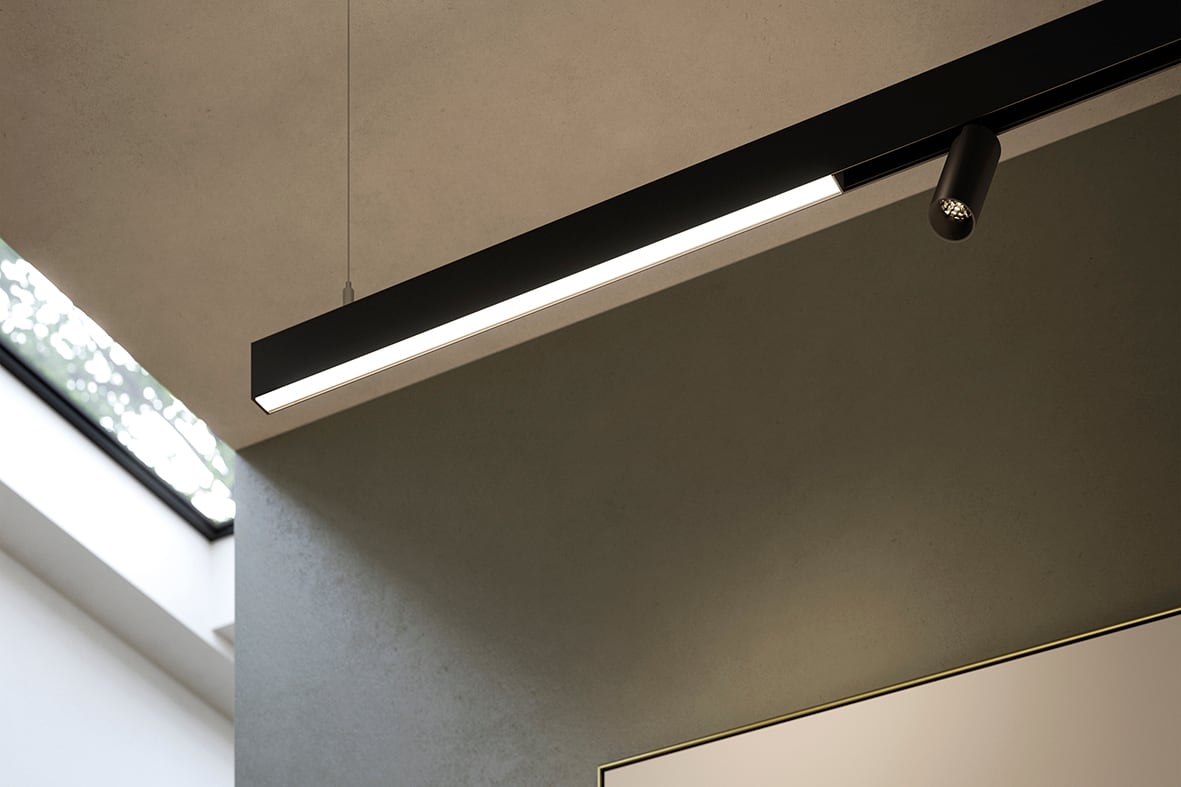 Binario a 4 conduttori 48V con sezione quadrata applicabile ad incasso rasato, a parete, plafone e a sospensione con la possibilit? di realizzare una doppia emissione di luce per un'illuminazione adalte prestazioni. Da completare con proiettori YAKI SPOT e HOLE. Sospensioni HOLE, MINI AXIOM e AXIO M. Elemento LED lineare YAKI LINEARE.