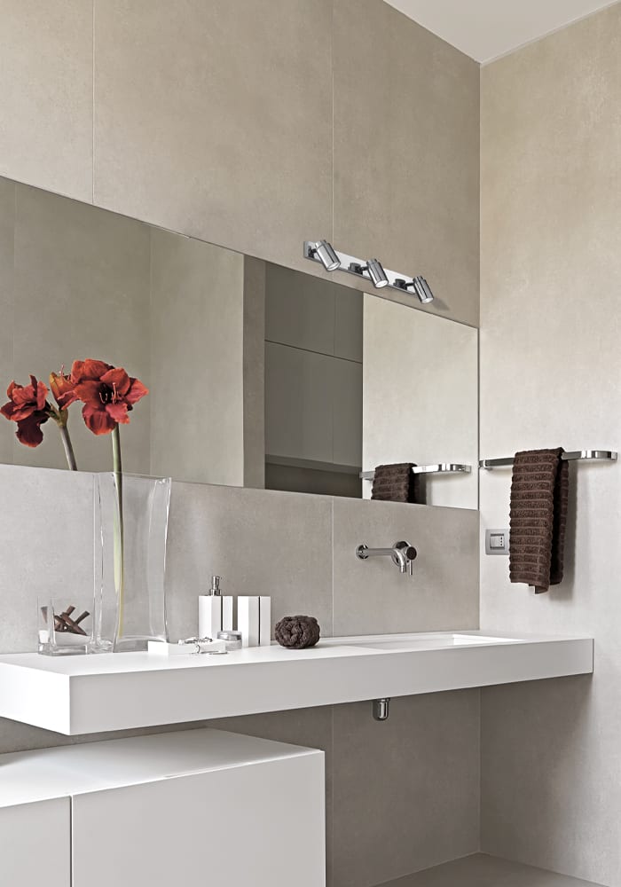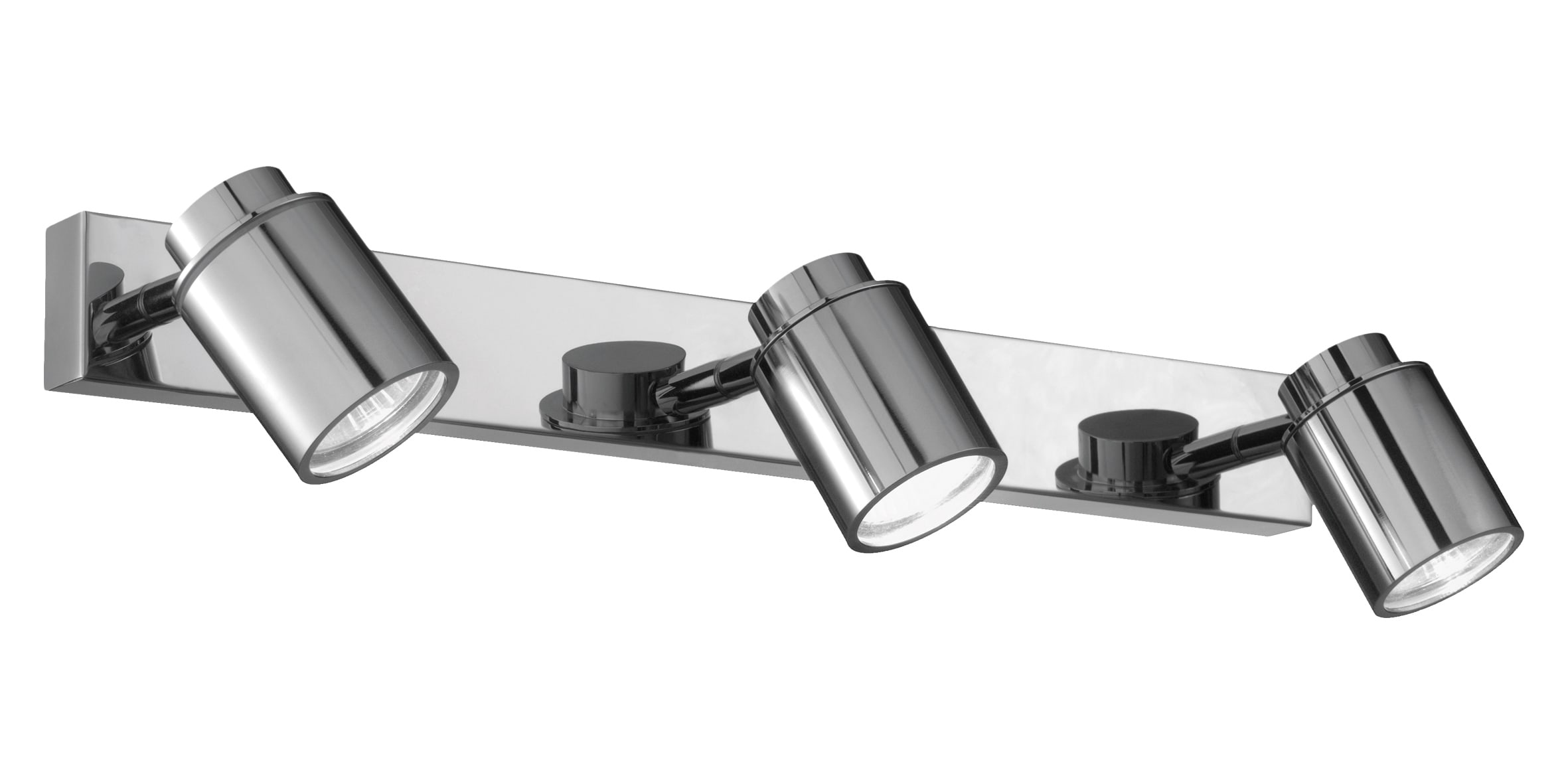 Lampada da soffitto e da parete in metallo cromato o in finitura nera con spot orientabili di 355? rispetto all'asse verticale e rispetto all'asse orizzontale di 90? verso l'alto. Vetro in cristallo temperato a copertura della fonte luminosa, attacco GU10 che consente di montare lampadina LED. Prodotto proposto nella versione singola, da due o da t re elementi.