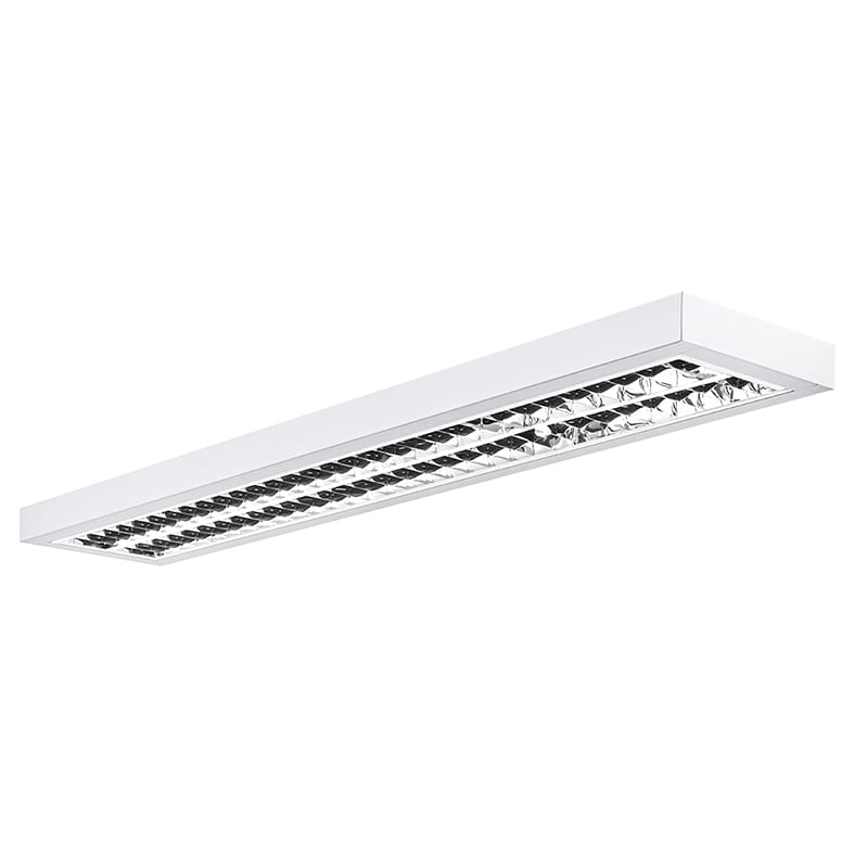 Apparecchio LED monoemissione e biemissione per installazione a plafone o a sospensione. Struttura in lamiera di acciaio, verniciata con polveri. Ottiche lamellari a doppia parabolicit? in alluminio l ucidato a specchio, con copertura in PMMA opale a protezione del LED, che consentono un corretto controllo dell'abbagliamento e di raggiungere un UGR<19 per installazioni in ambienti con videoterminali e uffici. Disponibile in due lunghezze con relative potenze, finitura bianca e due temperature colore (3000K e 4000K). Alimentatore integrato a bordo e disponibile nella versione DALI, emergenza, emergenza/DALI e sensore ambientale per tutti i codici. Su richiesta versione con emergenza 3 ore. Pr odotto conforme ai Criteri Ambientali Minimi (CAM ).