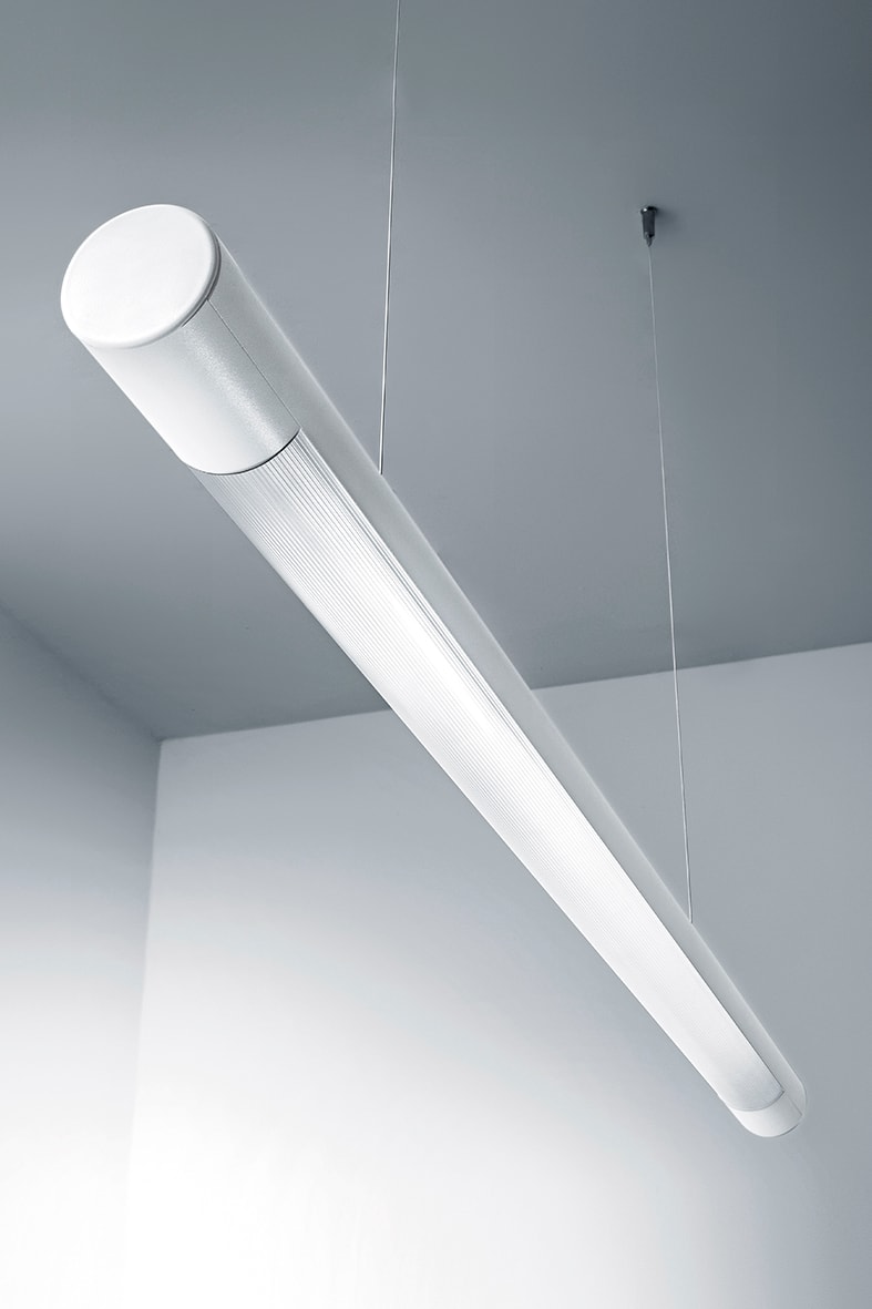 Apparecchio monoemissione a LED o con attacco G13per soli tubi LED. Applicabile a soffitto o a sospensione (mediante appositi accessori da ordinare separatamente) con possibilit? di configurazione in linea fino a 3000W tramite giunti (accessori da ordinare separatamente). Struttura cilindrica in al luminio estruso. Diffusore in policarbonato opalecon fissaggio a scatto che permette di ottenere un grado di protezione IP40. Predisposto con il cabl aggio universale (vedere schema di cablaggio).