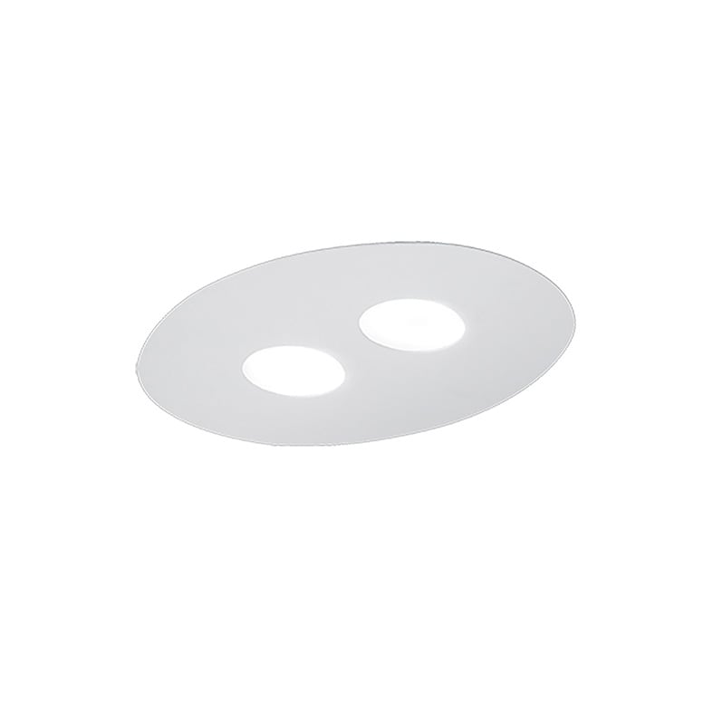 Lampada da soffitto e da parete, struttura ovale in pressofusione di alluminio (spessore 1mm) verniciata a polveri nel colore bianco opaco. Proposta in diverse misure con due, tre o quattro portalampada. Cablata con attacco GX53 che consente di monta re lampadina LED.