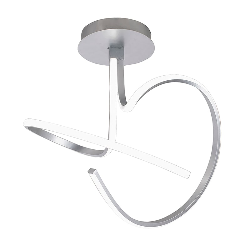 Lampada da soffitto, sospensione e parete LED (3000-4500K) dal design sinuoso e tondeggiante. Strutt ura disponibile nella finitura argento satinato enero opaco con rosone in tinta. Il LED integrato permette di creare un'atmosfera confortevole che va lorizza gli spazi e gli arredi.