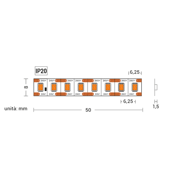 ROSSINI - RSSDAI405 STRIP LED 9,6W/MT 24V IP20 3000K CRI90 5MT