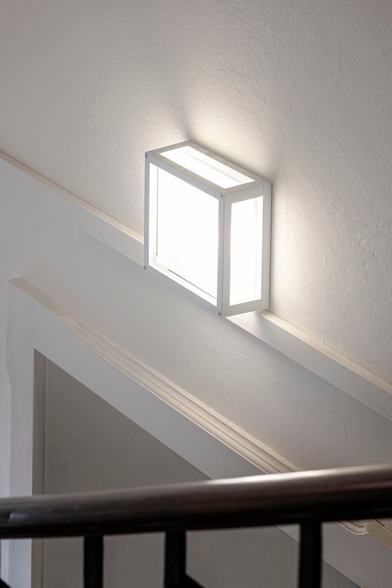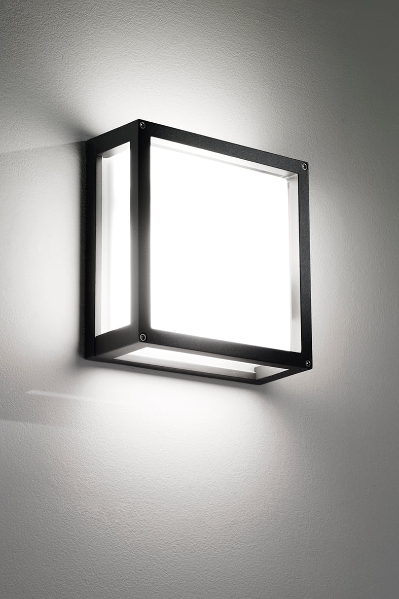 Apparecchio a parete e plafone da esterno (IP54) con attacco E27 che consente di montare lampadina LED. Struttura in pressofusione di alluminio verniciato con polveri poliestere a elevata resistenza a i raggi ultravioletti e alla corrosione, diffusoein vetro satinato. Disponibile in quattro finiture (bianco, grigio, antracite e marrone). Disponibili giunti certificati IP68 per la realizzazione del le connessioni elettriche, sicure, durevoli e con barriera anticondensa.