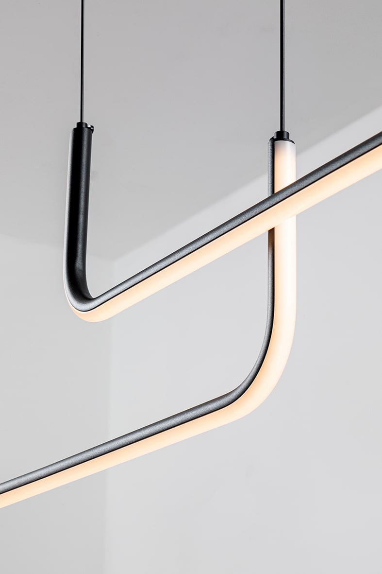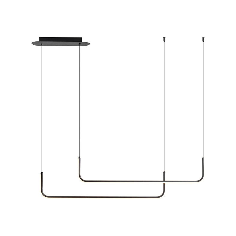 Lampada a sospensione LED (3000K) dal design sobrio ed elegante. Struttura in alluminio proposta nella finitura nera, personalizzabile nell'installazi one per creare diverse composizioni scenografiche e luminose, a seconda dello spazio sottostante dailluminare. Cavi elettrici e di tenuta in finitura nera. I diffusori in acrilico diffondono una luce omogenea in tutto l'ambiente circostante