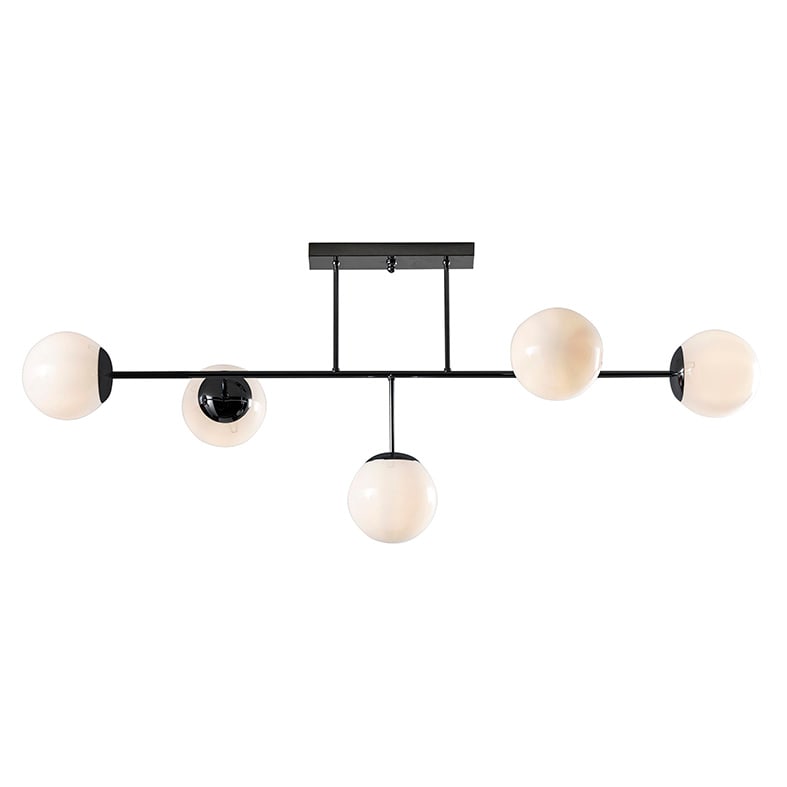 Luce diffusa, omogenea e avvolgente per questa lam pada da parete e da soffitto dal design moderno eminimale. Struttura in metallo cromato oppure nella versione bianco o nero opaco, con cinque punti l uminosi omnidirezionali in vetro bianco latte perla versione da soffitto e una sfera per la versione da parete. Si presta ottimamente per l?installazione sopra un tavolo, per arredare in modo scenografico la zona living o in luoghi ristretti o di passaggio. Attacco E14 che consente di montare lampa dina LED.