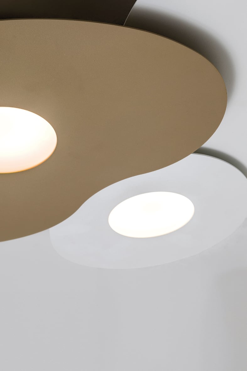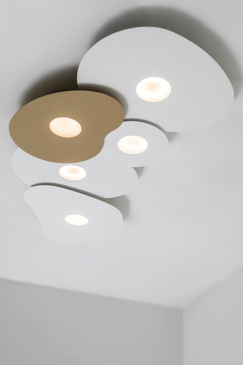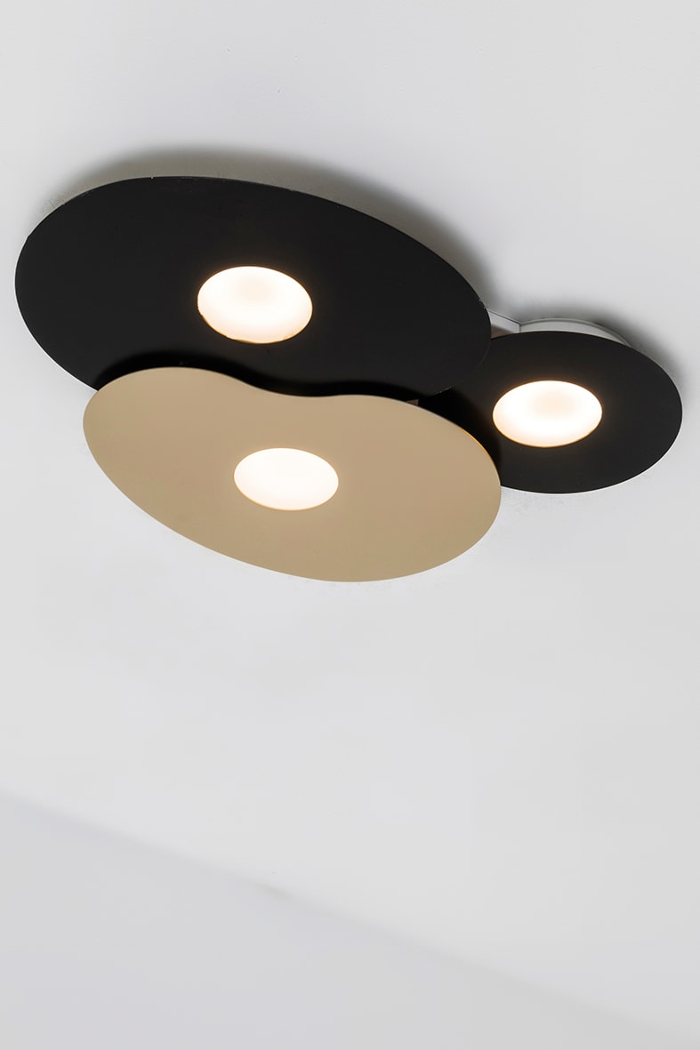 Lampada da parete e da soffitto con struttura e di ffusore in alluminio verniciata a polveri. Designtondeggiante e dallo spessore minimo (1mm). Attacco GX53 che consente di montare lampadina LED. Disponibile in quattro misure versione mini, small, medium e large) che si possono montare singolarmente o accostare in composizioni, da due, tre, quattro o cinque elementi (vedi schema di montaggio). Proposta in tre finiture (bianca, nera e oro satinato) che si prestano per composizioni uniche e perso nalizzate. La tecnica di fissaggio a calamita deisingoli elementi facilita il montaggio e la pulizia del prodotto. Il montaggio della parte metallica alla fonte luminosa ? a calamita. Questo permette di ruotare le forme a proprio piacimento.