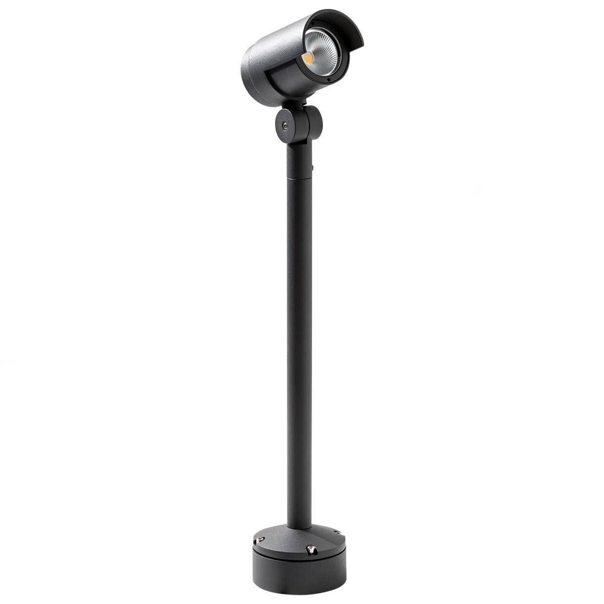 Proiettore LED orientabile per esterno (IP65), applicabile a plafone, parete e terra con apposito picchetto in dotazione. Struttura in pressofusionedi alluminio verniciato con polveri poliestere adelevata resistenza ai raggi ultravioletti e alla corr osione. Disponibile nella finitura antracite e indue temperature colore (3000K e 4000K). Disponibili giunti certificati IP68 per la realizzazione del le connessioni elettriche, sicure, durevoli e con barriera anticondensa.