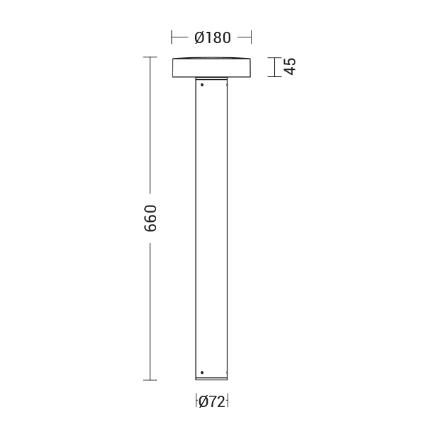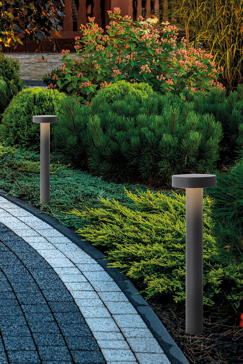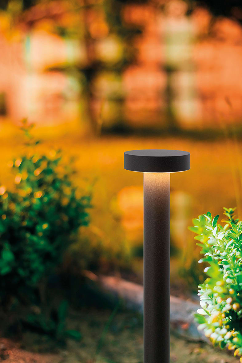 Paletto LED da terra per esterno (IP65) con alimentatore integrato. Struttura in pressofusione di alluminio con polveri poliestere ad elevata resistenza ai raggi ultravioletti e alla corrosione e diffusore in policarbonato. Disponibile in due altezze, indue finiture (grigio e antracite), due temperature colore (3000K e 4000K). Grazie al suo design emette luce diffusa e confortevole verso il basso, proprio dove serve, illuminando giardini, verande, viali ed ingressi. Disponibili giunti certificati IP68 per la realizzazione di connessioni elettr iche sicure, con barriera anticondensa.
