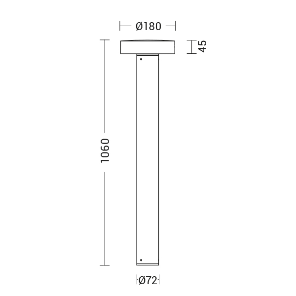 Paletto LED da terra per esterno (IP65) con alimentatore integrato. Struttura in pressofusione di alluminio con polveri poliestere ad elevata resistenza ai raggi ultravioletti e alla corrosione e diffusore in policarbonato. Disponibile in due altezze, indue finiture (grigio e antracite), due temperature colore (3000K e 4000K). Grazie al suo design emette luce diffusa e confortevole verso il basso, proprio dove serve, illuminando giardini, verande, viali ed ingressi. Disponibili giunti certificati IP68 per la realizzazione di connessioni elettr iche sicure, con barriera anticondensa.