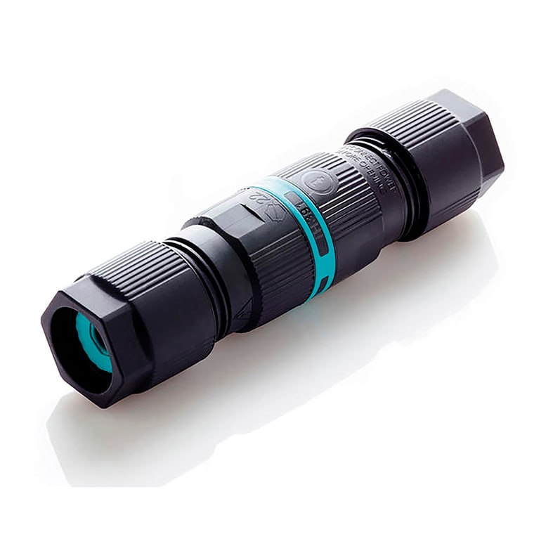 Giunto circolare di connessione lineare per aumentare il grado di protezione a IP68. Corpo in materiale plastico (parti di colore nero) e gomma (parti di colore verde).