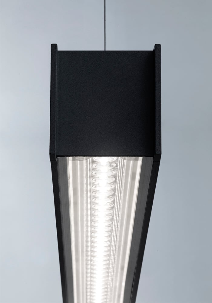 Apparecchio LED monoemissione o biemissione, per i nstallazione a sospensione o a soffitto. Corpo inalluminio estruso Made in Italy, diffusore in poli carbonato con moduli LED di ultima generazione adelevata efficienza. Configurazioni in linea o ad angolo, con differenti soluzioni di installazione e di fasci luminosi. L'aggancio rapido della sorgente LED tramite magnete e cavo di sicurezza in dotazione, garantiscono una facile e sicura sostituzione in caso di manutenzione. Disponibile con schermo prismatico e ottiche con lenti UGR<19. Due finiture (bianco e nero) e due temperature colore (3000K e 4000K). Alimentatore integrato a bordo dell'apparecchio. Prodotto conforme ai Criteri Ambientali Minimi (CAM)