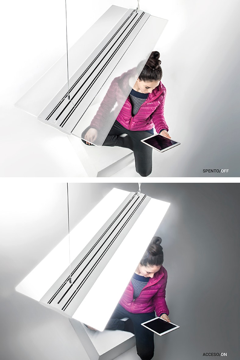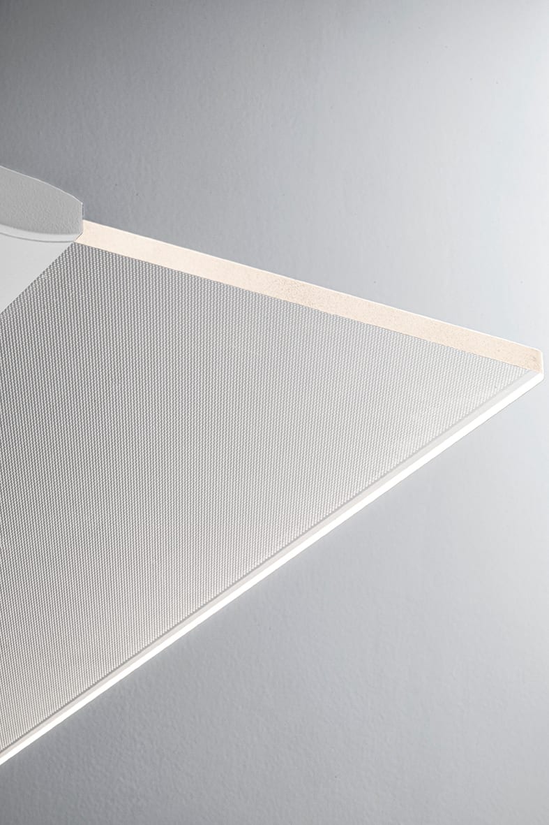 Apparecchio biemissione a sospensione, composto da un profilo centrale in alluminio estruso verniciato e due schermi laterali in PMMA trasparente. Dal design elegante e moderno, racchiude una innovativa tecnologia che lo rende perfetto per ambienti di lavoro, uffici e sale riunioni. I moduli LED son o alloggiati nel profilo centrale e la luce viene convogliata lungo tutta la superficie diffondentegrazie ad una microincisione a laser effettuata nel PMMA per un illuminamento omogeneo, morbido, sen za riflessi e privo di abbagliamento con UGR<19 eCRI>90. Da spento il prodotto risulta trasparente, da acceso diventa di un bianco pieno. Disponibile in diverse misure e relative potenze, due tempera ture colore (3000K e 4000K). Alimentatore inclusoda installare in remoto e disponibile nella versione DALI. Prodotto conforme ai Criteri Ambientali M inimi (CAM)