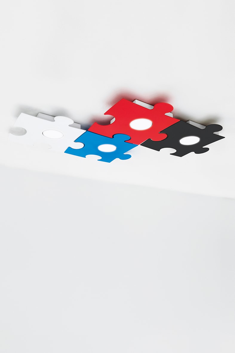 Lampada a soffitto e a parete con struttura in metallo dalla forma particolare e divertente: pi? apparecchi si possono accostare tra loro creando composizioni personalizzate nei colori e nella disposizione degli elementi (tramite intervento di personale specializzato). Disponibile in quattro finiture: bianco, nero, rosso e azzurro. Cablata con atta cco GX53 che consente di montare lampadina LED.