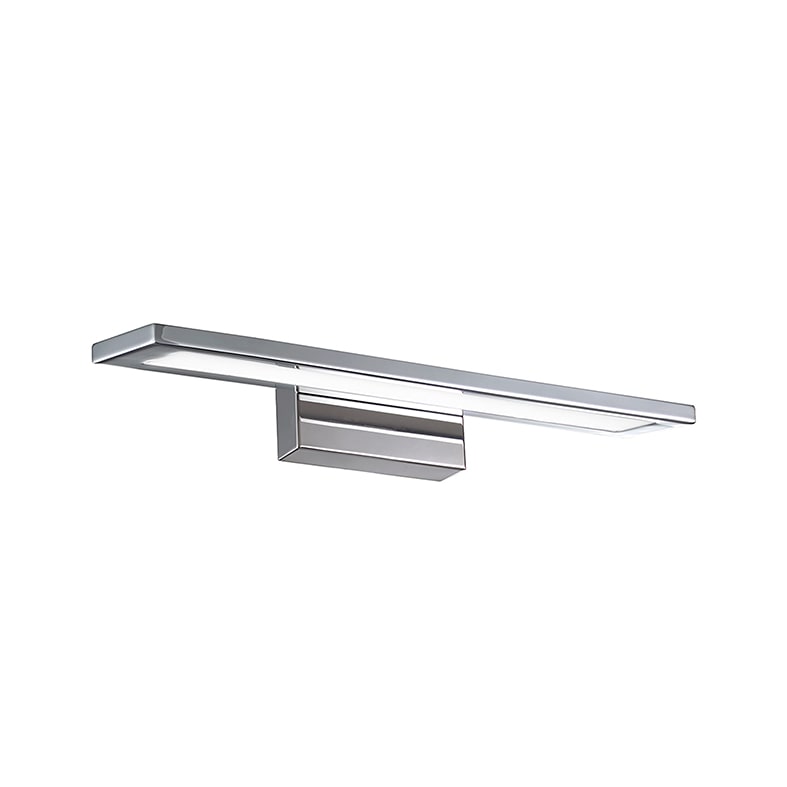 Lampada da parete con LED integrato (3000K), propo sta in tre misure e relative potenze. Corpo moltosottile in metallo (alto solo 60mm), proposto in finitura cromata, bianca e nera. Diffusione della luce a 180?, si presta per illuminazione diffusa da specchi e quadri.