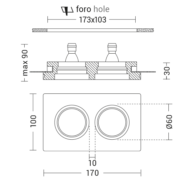 Faretto ad incasso in gesso rasato a scomparsa totale, dalla ridotta profondit?, ideale per controso ffitti e ribassamenti contenuti. Attacco GU10 checonsente di montare lampadina LED. Disponibile in versione tonda e quadrata. Cassaforma per install azione in muratura da ordinare come accessorio.