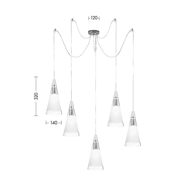 ROSSINI - RSSREN004 SOSPENSIONE 5 ELEMENTI CROMO/VETRO BIANC