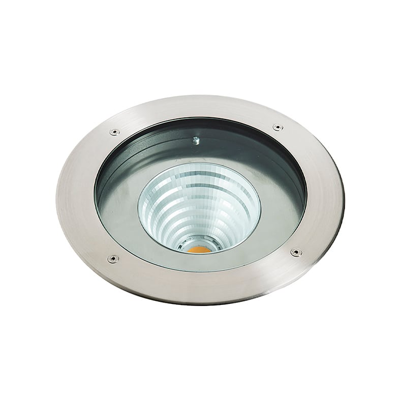 Faretto LED ad incasso per esterno, da terra, carrabile (max. 3500Kg a 30 Km/h), corpo in alluminio con vetro temperato e cassaforma in dotazione. Ghiera e viti di fissaggio in acciaio INOX, guarnizioni in silicone per garantire un alto livello di protezione (IP67). Alimentatore LED integrato. Disponibile in due temperature colore (3000K e 4000K), con ottica simmetrica o asimmetrica. Disponibili giunti certificati IP68 per la realizzazione delleconnessioni elettriche, sicure, durevoli e con barriera anticondensa.