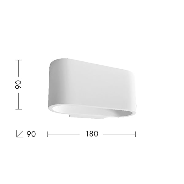 Lampada da parete in gesso biemissione, con struttura cava proposta in diverse forme in versione squadrata o tondeggiante. Struttura in gesso, che consente la pittura del corpo in finitura colore a propria scelta. Attacco tradizionale che consente di montare lampadina LED.