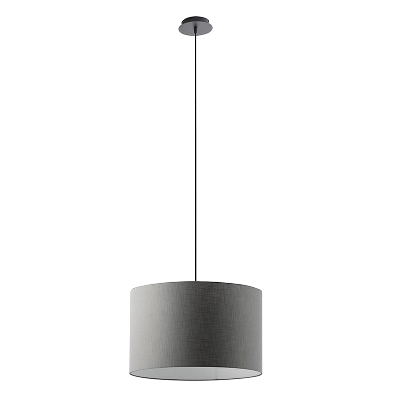Lampada a sospensione, a plafone, da parete, da ta volo e da terra con paralume in tessuto con formacilindrica o conica, struttura in metallo verniciato bianco o nero con cavi in PVC in tinta. La vers ione a plafone ? proposta anche con braccio fissoper punti luce decentrati. Le quattro diverse finiture (avorio, tortora, antracite e grigio) e l?attacco E27 che consente di montare lampadina LED, la rendono perfetta per illuminare ogni angolo della casa.