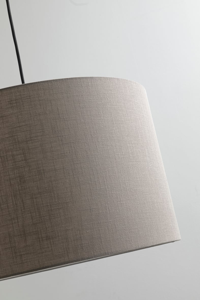 Lampada a sospensione, a plafone, da parete, da ta volo e da terra con paralume in tessuto con formacilindrica o conica, struttura in metallo verniciato bianco o nero con cavi in PVC in tinta. La vers ione a plafone ? proposta anche con braccio fissoper punti luce decentrati. Le quattro diverse finiture (avorio, tortora, antracite e grigio) e l?attacco E27 che consente di montare lampadina LED, la rendono perfetta per illuminare ogni angolo della casa.
