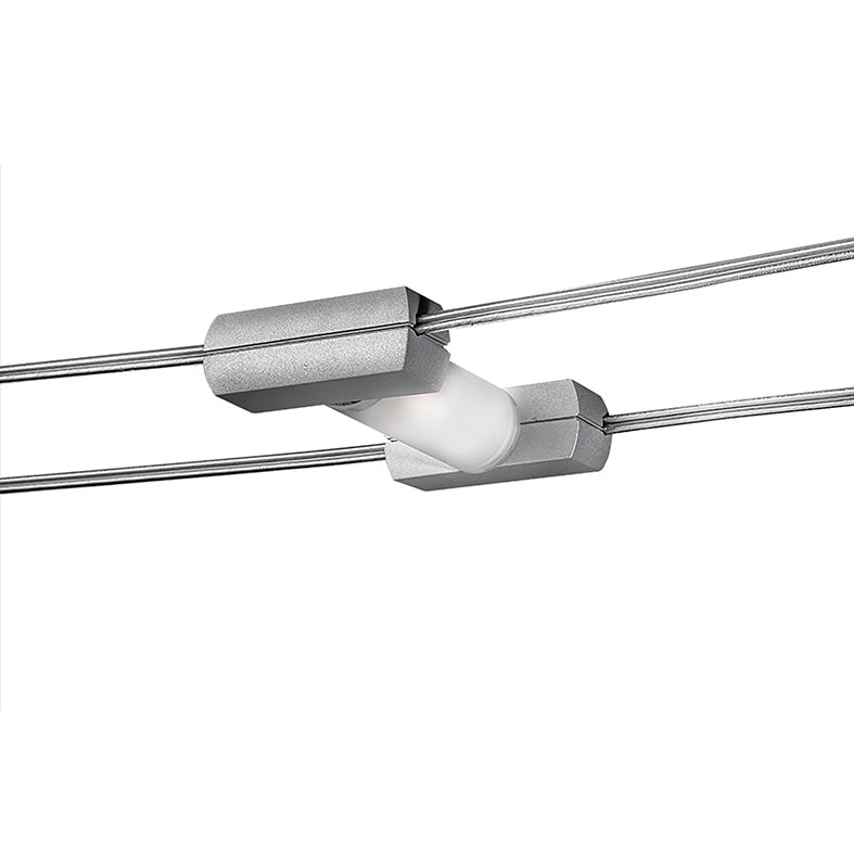 Sistema a tesata con coppia di cavi con interasse160mm: permette di installare apparecchi con fonte luminosa con LED integrato o con attacco tradizionale (GU10, R7s, E27 che consentono di montare lampadina LED). Corpi illuminanti da posizionare secondo le esigenze di installazione in estruso di all uminio (verniciato bianco opaco o grigio opaco) ediffusore in policarbonato. Disponibili in versione luce diffusa, monoemissione o biemissione o a sp ot con corpo illuminante orientabile su due assi.LED disponibile in due gradazioni (3000K e 4000K).